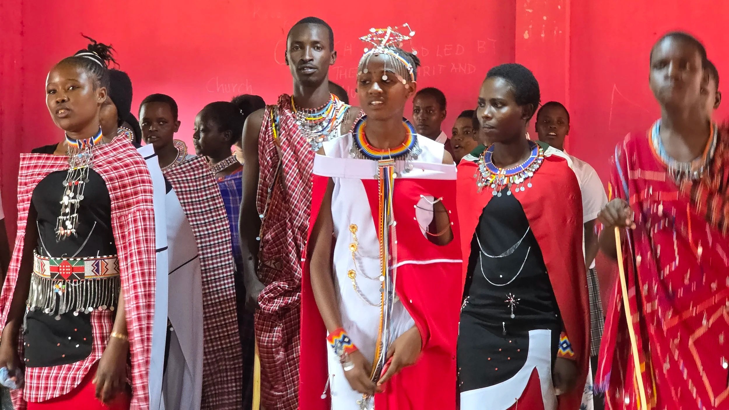 Við hittum fyrir kennara og nemendur sem taka á móti gestum á sinn einstaka keníska máta.